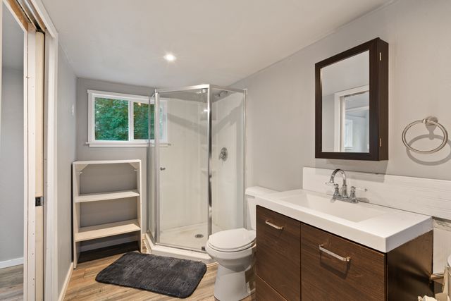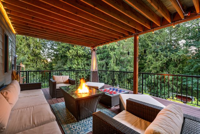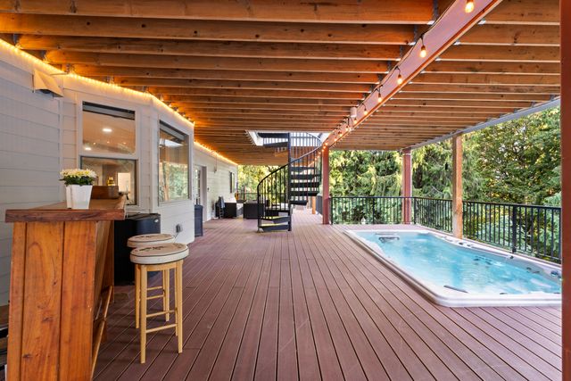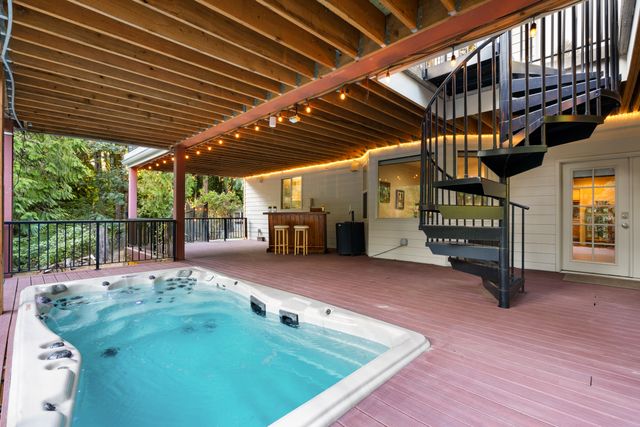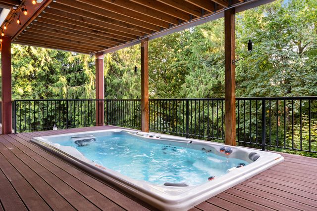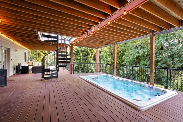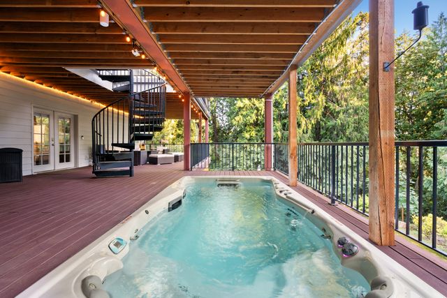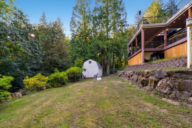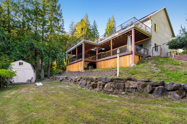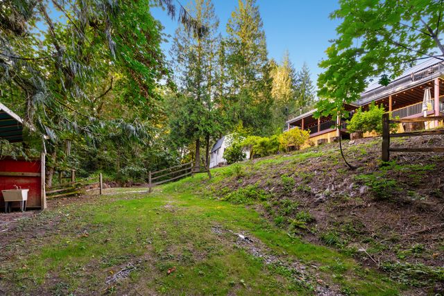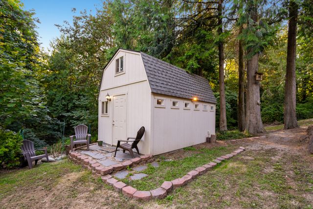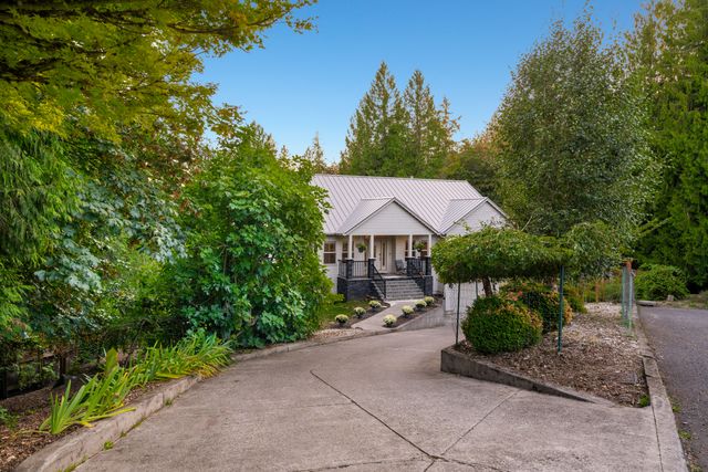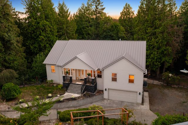 Motivated Seller. Will consider all reasonable offers. Welcome to your dream suburban homestead! No HOA! No CCRs! This 2-acre unicorn in the middle of Salmon Creek features lush forests & room to garden. Embrace the peace of this private haven, complete with/ raised garden beds, 2 chicken coops & a variety of fruit trees, blueberry bushes & raspberry patches. Includes garden buildings, a lean-to & an All Seasons Writer's Shed w/ 3/4 bathroom + loft. Also includes a tranquil creek w/ a bridge for enjoying birds & other wildlife. New metal roof w/ covered gutters, permanent holiday lighting, brand new Trane A/C and furnace & owned solar panels. Absolute picturesque charm! At the heart of this suburban retreat lies a delightful daylight ranch. Step inside to discover an open-concept design & rustic wood floors, vaulted ceilings, & a cozy fireplace that creates a warm & inviting atmosphere. Dual primary suites on main level. Each luxurious retreat includes spa-like bathrooms. Full laundry rooms upstairs & down w/ custom shelving. Enjoy 2 enormous decks that connect with a whimsical spiral staircase that overlooks the property & forest beyond. You'll find an oversized, lavish swim spa/pool on the lower deck that is perfect for relaxation. The top deck is plumbed & wired for an outdoor kitchen. The home's kitchen offers custom wood cabinets, & stainless-steel appliances including a Wolf oven & Miele refrigerator. Lower level features a third bedroom or spacious guest quarters & wet bar. The separate entrance is ideal for visitors. The custom decks were designed & built by a locally renowned builder. The lower covered deck provides the perfect setting for hosting year-round unforgettable events. This exceptional property is more than just a suburban homestead retreat; it's a lifestyle. Experience the best of Salmon Creek living! Seller is a licensed Realtor in Washington State.